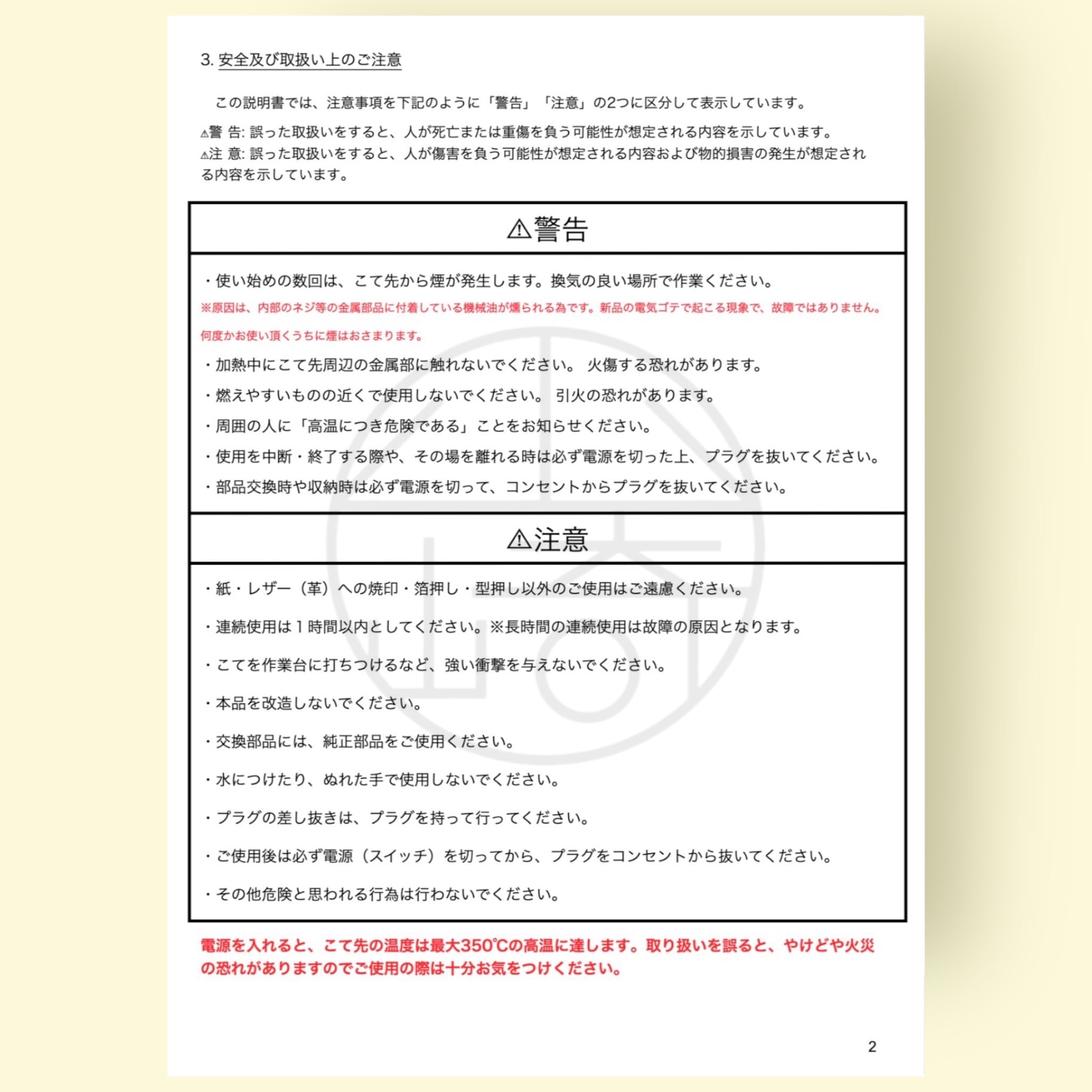300℃ ⇨ 300℃ ※ 焼印適正温度