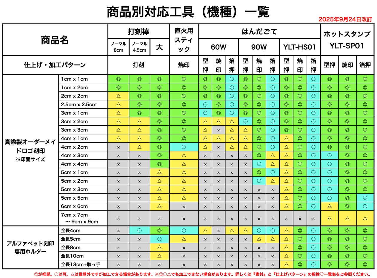 ①刻印サイズについて