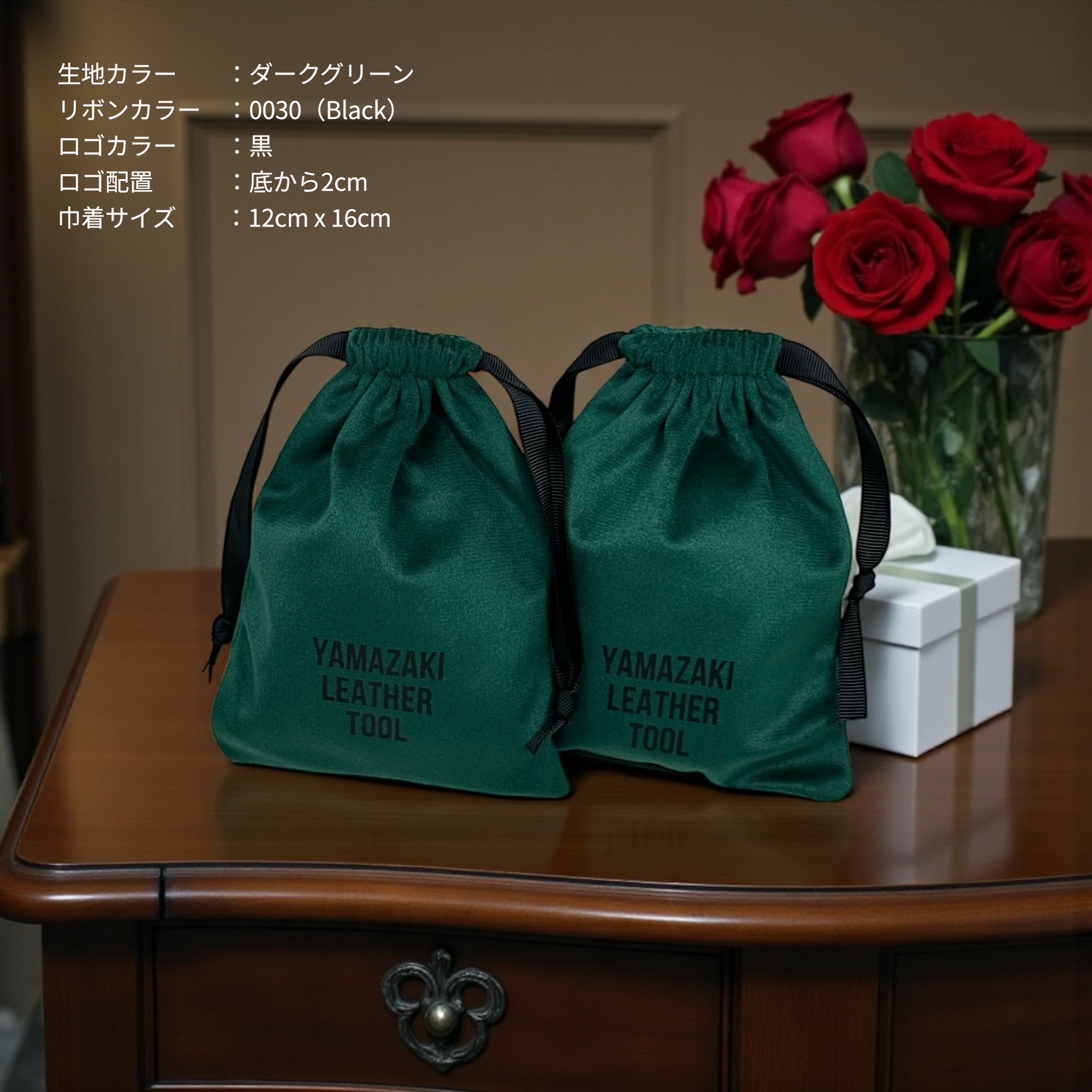 上品な光沢で柔らかく、滑らかな手触りが魅力のベルベット生地で、巾着袋を製作いたします。