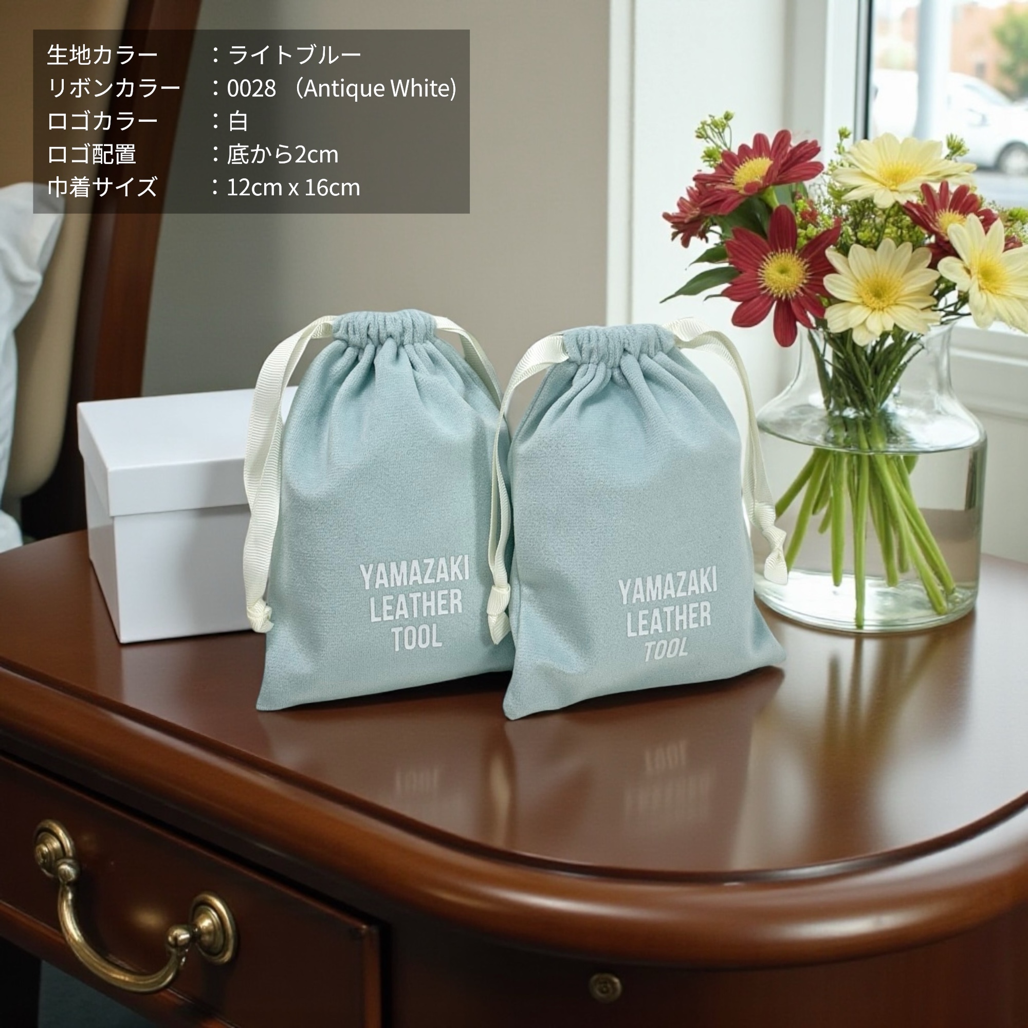 巾着袋のサイズは、定番サイズ、または横x縦の面積(一辺最小5cm〜製作可)より自由にご指定いただけます♪