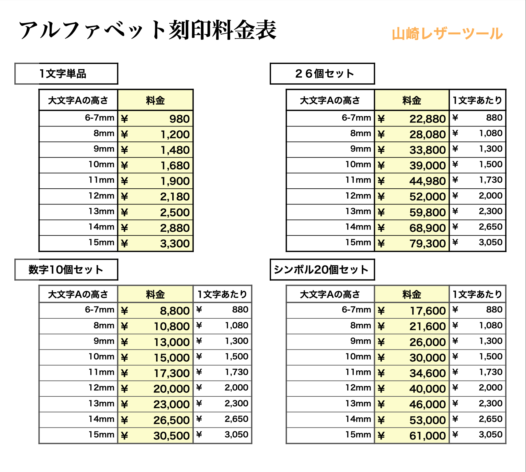 大文字Aの高さ6mm未満をご希望の場合は事前にご相談ください。まず製作可否を確認致します。