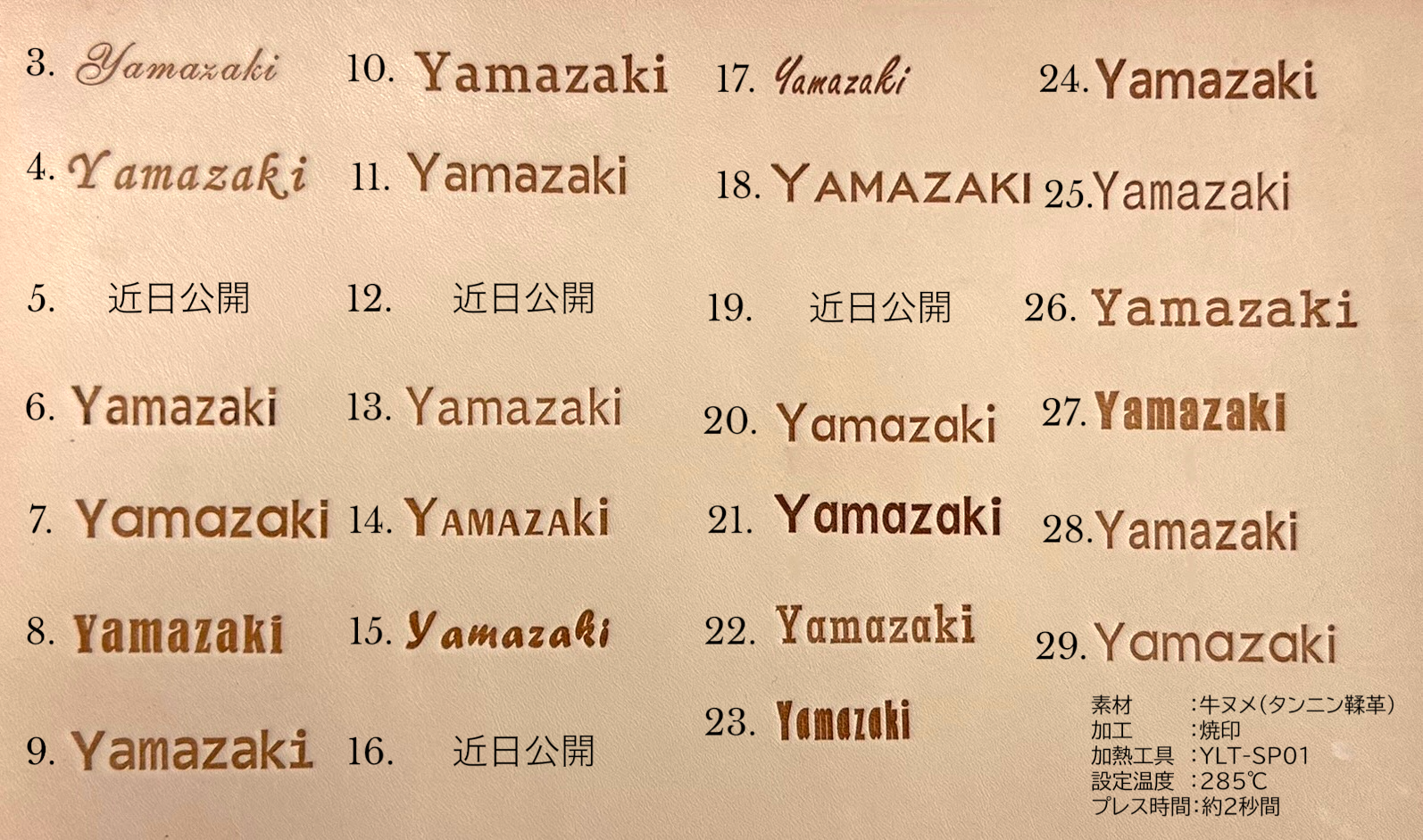 打刻、焼印、箔押し等、目的に応じて以下よりお選びください。