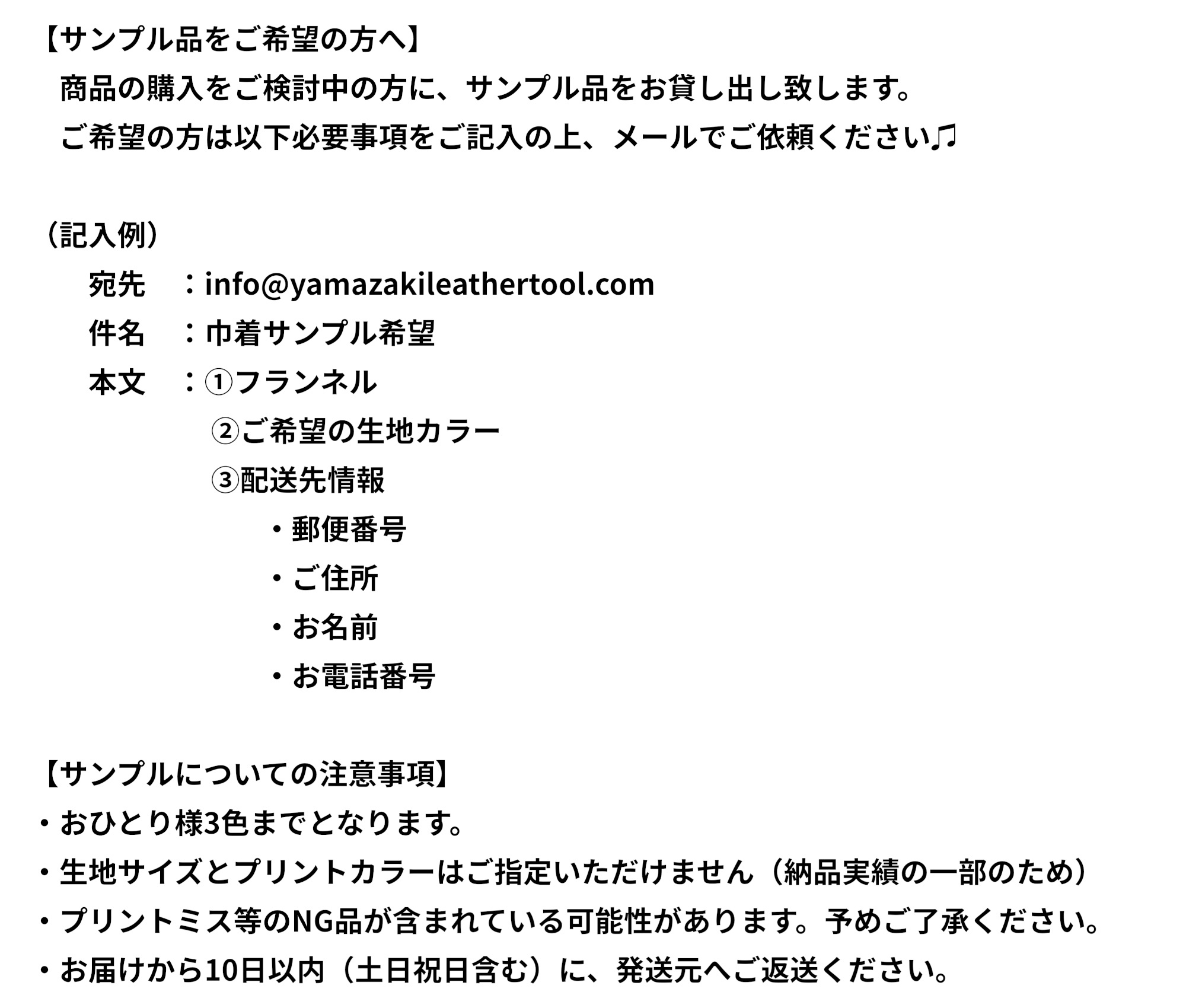 本文 :①ご希望の巾着サイズ・数量