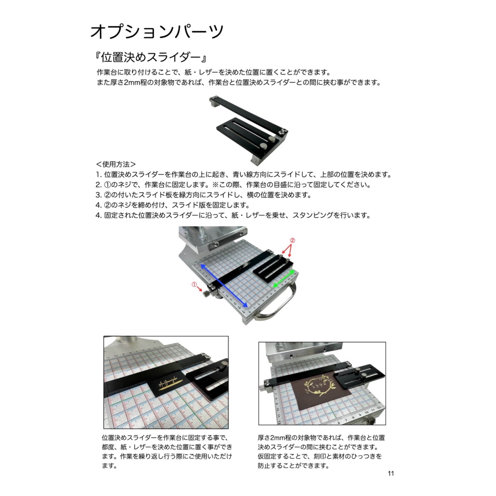 ③ ご希望オプション(例:位置決めスライダー、マルチホルダー など)