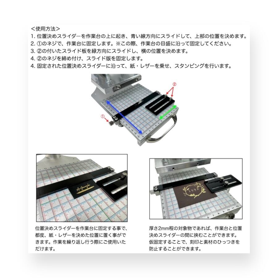 • スライド式作業台搭載で、刻印位置の確認が容易