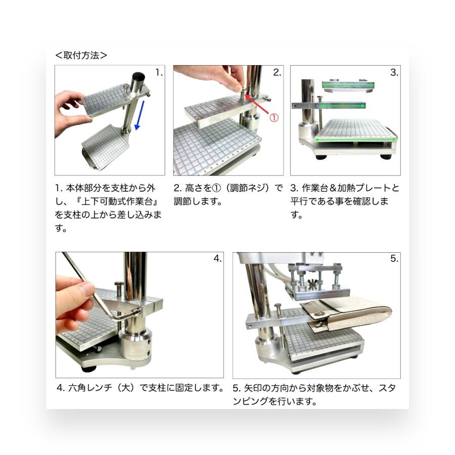 YLT-SP02は、上部ハンドルによる高さ調整機構を備えており、刻印調整を頻繁に行う現場で、作業効率と再現性に優れたモデルです。