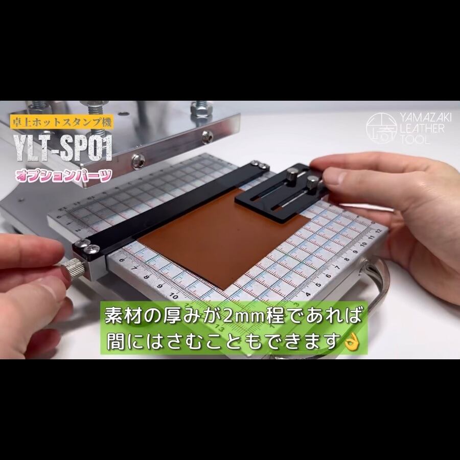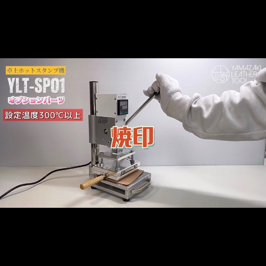 本製品「YLT-SP01」は、オーダーメイド刻印やアルファベット刻印を用いて、箔押し・焼印・素押し加工を行うための業務用卓上ホットスタンプ機です。