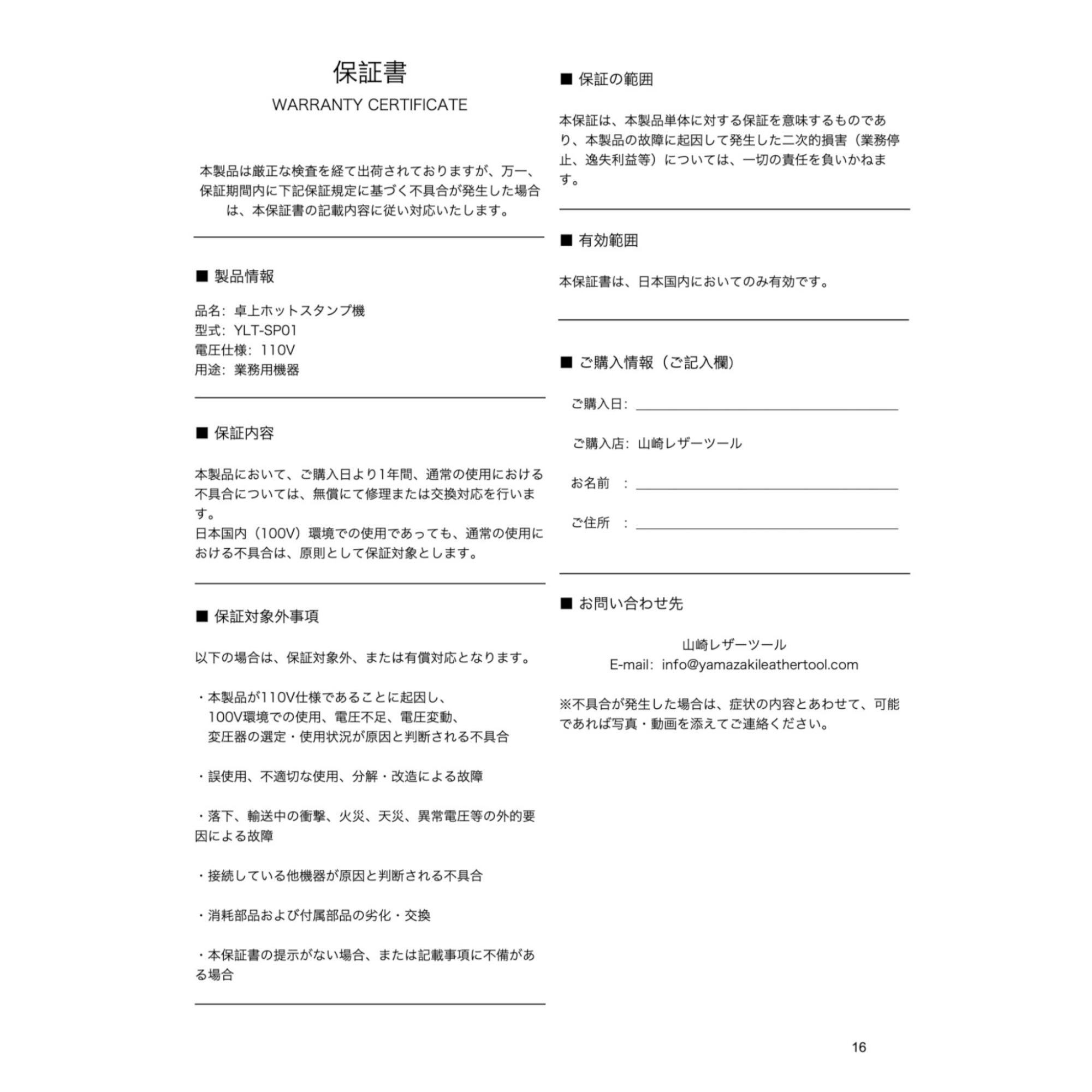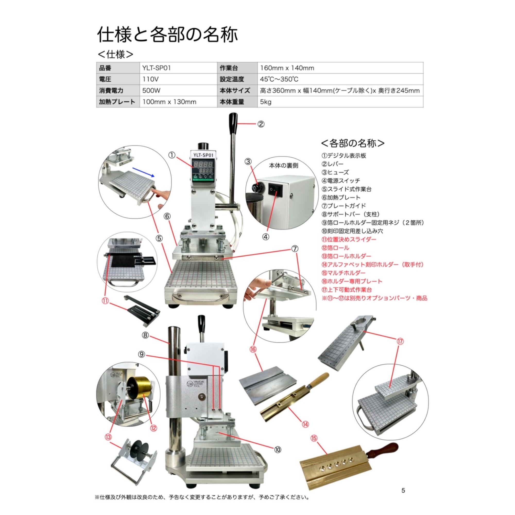 業務用 卓上ホットスタンプ機 YLT-SP01(110V仕様・箔押し・焼印・型押し対応/取説付)即納キャンペーン対象品
