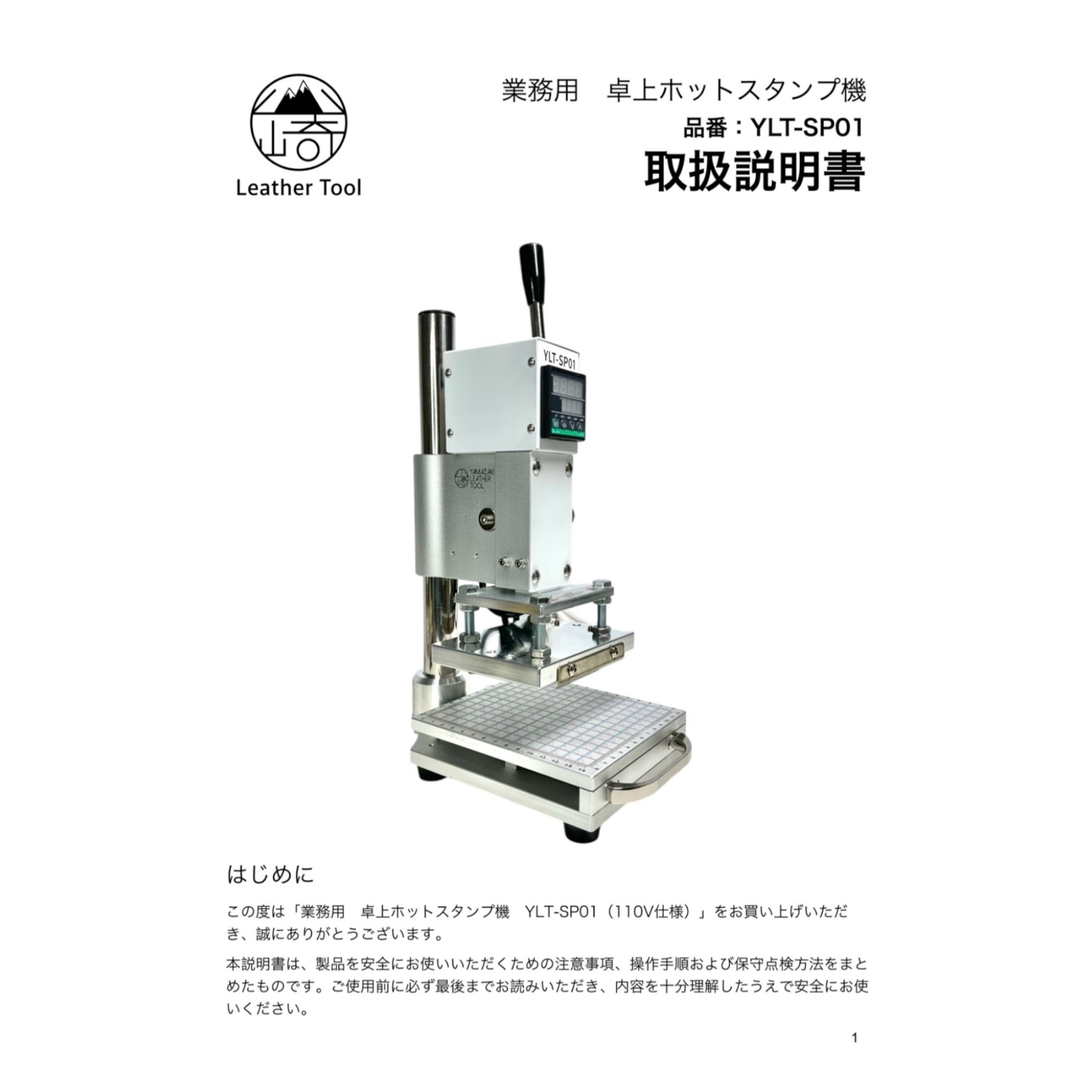 本製品「YLT-SP01」は、オーダーメイド刻印やアルファベット刻印を用いて、箔押し・焼印・素押し加工を行うための業務用卓上ホットスタンプ機です。