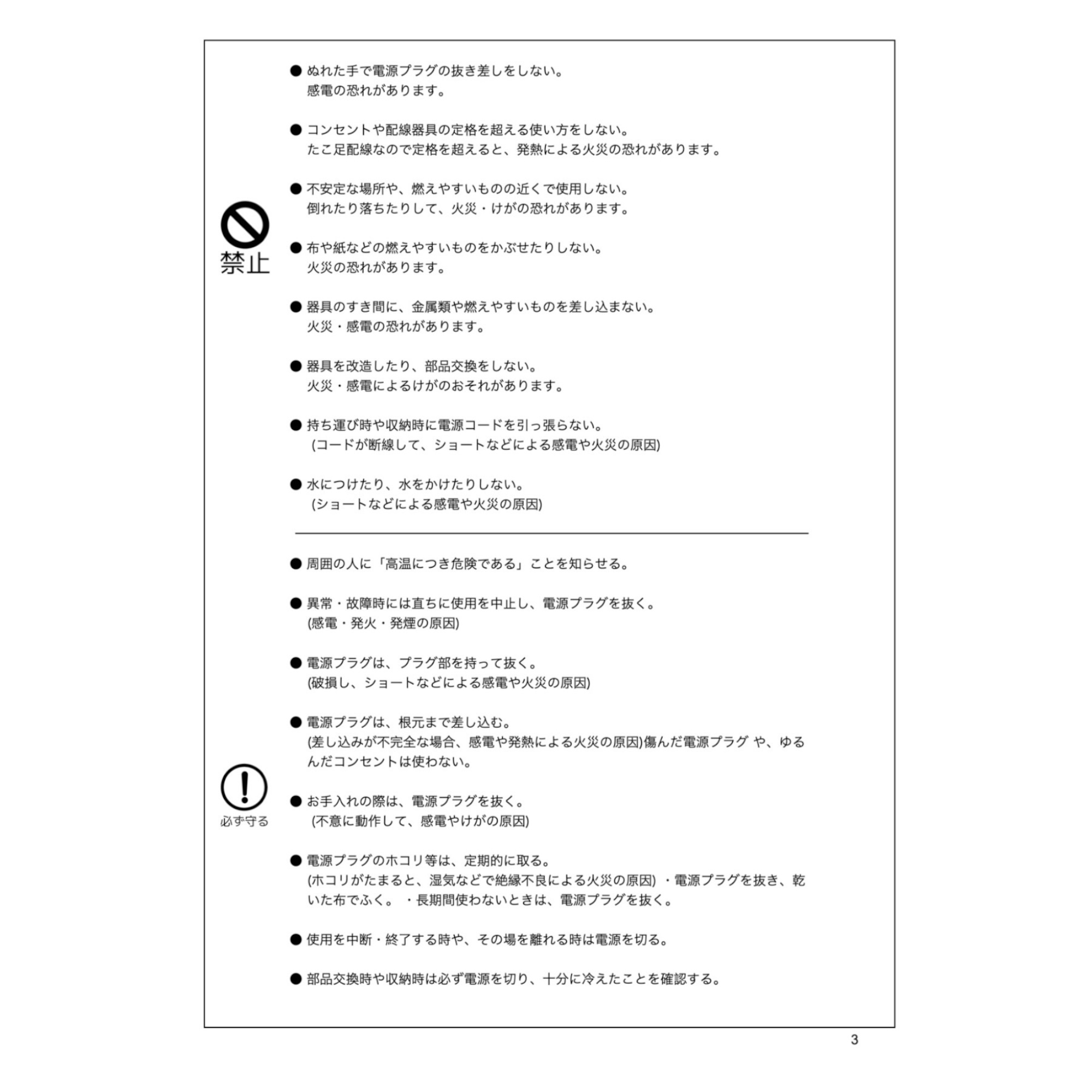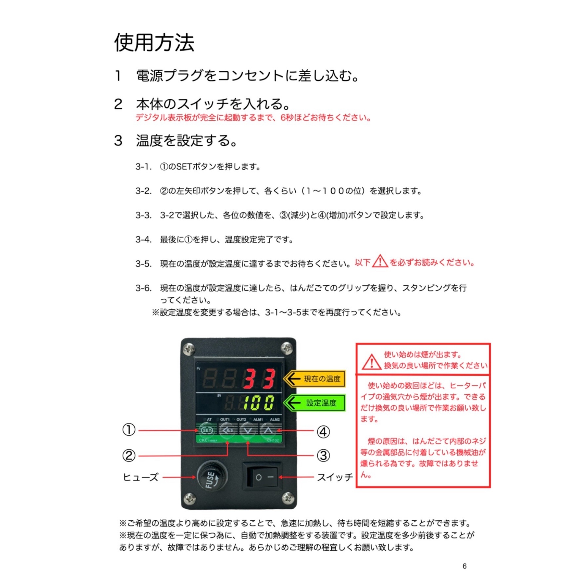 2. 初回使用時、内部の機械油が熱で燻られ、煙が出ることがありますが故障ではありません。