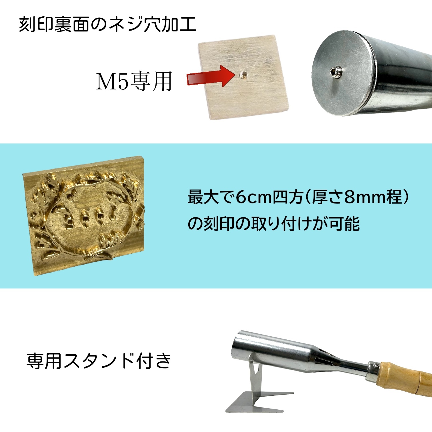 ✅ 最大6cm角(厚み約8mm)までの真鍮製刻印に対応