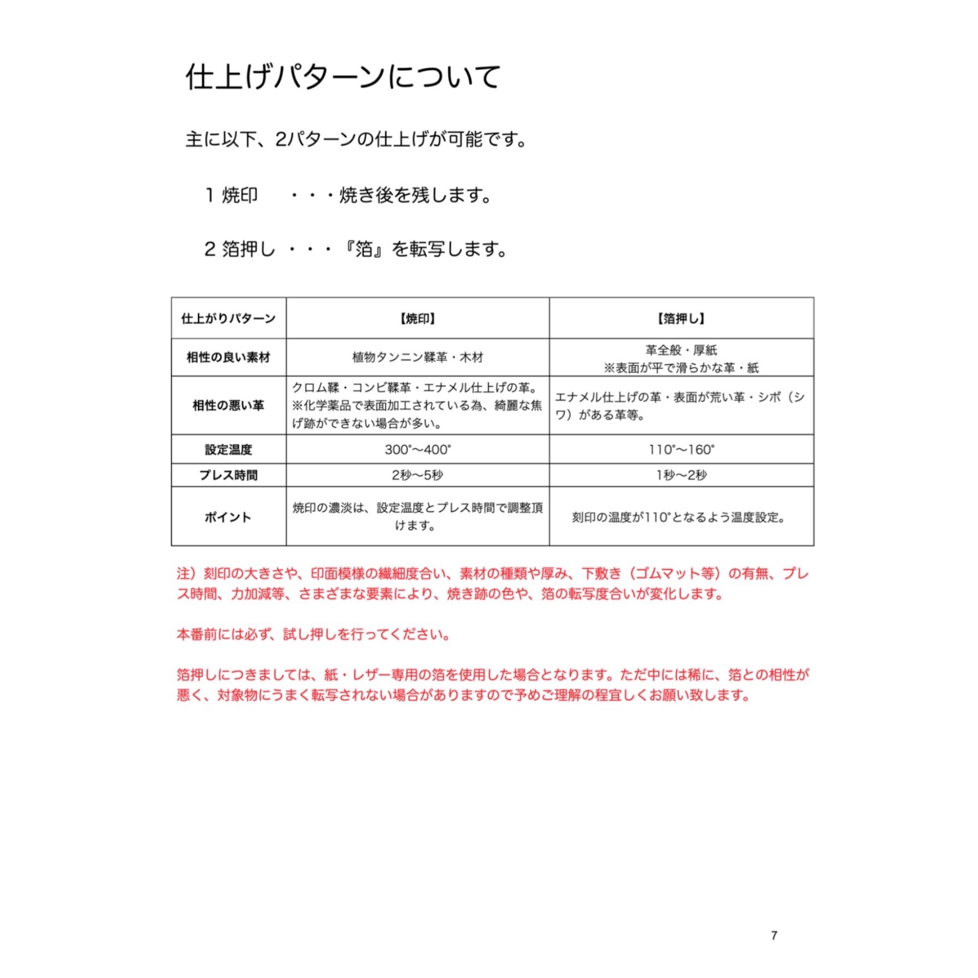 4. 箔押しは、素材・箔・刻印・加圧条件により転写精度が変わります。